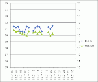 ただ、体重は落ちてないんですが、週に1回ぐらい体を動かすようにしたせいか、体脂肪量は非常にゆるやか右下がり傾向にあるようです。