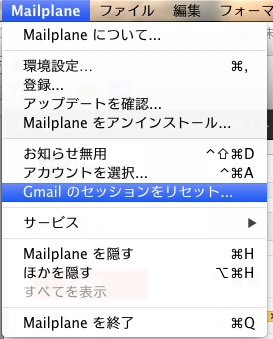 「Mailplane」メニュー→「Gmailのセッションをリセット…」
